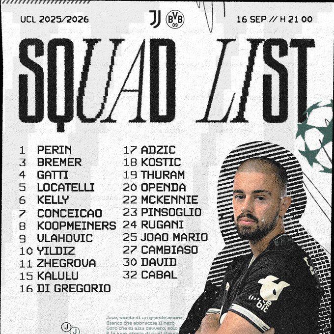 尤文图斯欧冠首轮对阵多特蒙德大名单:戴维领衔,阿季奇入选