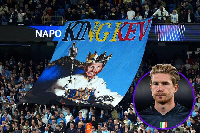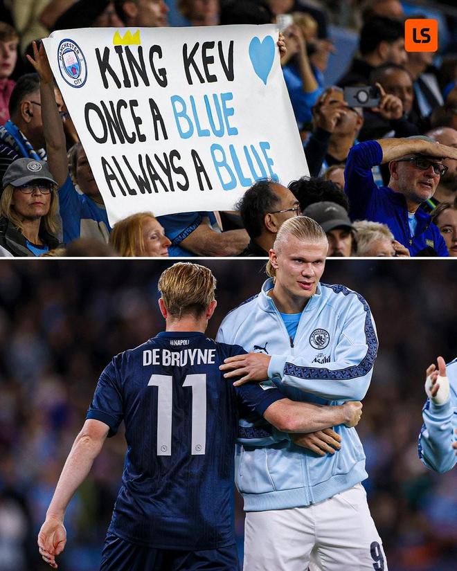 欧冠联赛阶段第一轮,那不勒斯客场对阵曼城,蓝月传奇德布劳内重返阿提哈德,曼城球迷们打出横幅致敬“国王凯文”。