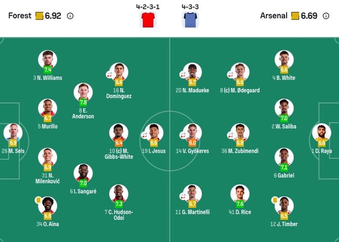 森林首发:26-塞尔斯、5-穆里略、31-米伦科维奇、34-埃纳、6-桑加雷、8-埃利奥特-安德森、10-吉布斯-怀特、16-多明戈斯(89'21-哈钦森)、7-奥多伊、19-伊戈尔-热苏斯(76'14-恩多耶)、3-内科-威廉姆斯